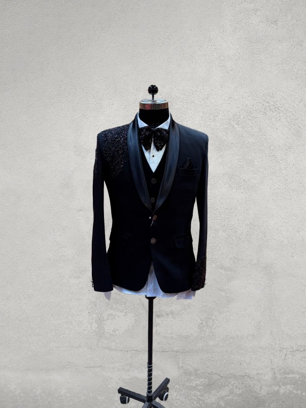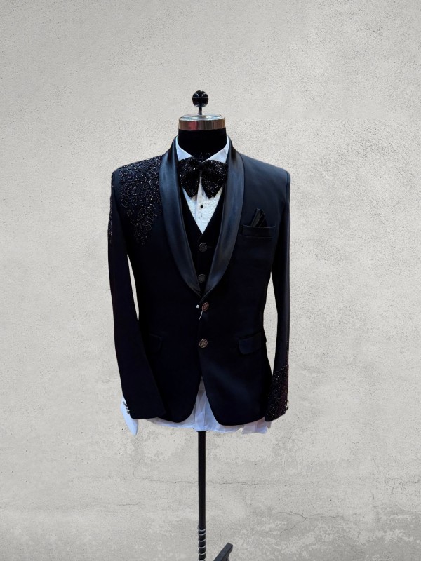 Black designer embroidered 3 piece tuxedo